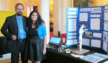 Based on open source 3D CAD files for a prosthetic hand designed by InMoov in France, Cleetus developed a cost-effective prototype hand and control mechanism that she 3D printed and programmed herself. “I wrote the code, set up the circuits and overall design, [and] constructed the touch sensor glove,” Cleetus said. She was nominated and selected to present the prosthetic hand project at the annual White House science fair in May 2014—one of only 32 students nationwide.