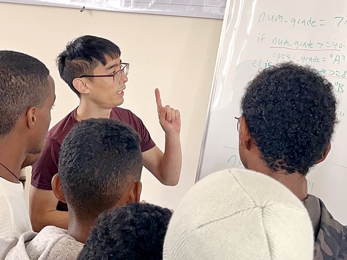 CS professor Daniel Kang organizes and lectures at AddisCoder, a free, intensive four-week summer program in Addis Ababa, Ethiopia, that introduces high school students to programming and algorithms. The 2024 session took place from July 14 to August 9.