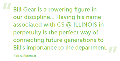 “Bill Gear is a towering figure in our discipline, based on his foundational technical contributions and remarkable leadership at the helm of our Computer Science Department. Having his name associated with CS @ ILLINOIS in perpetuity is the perfect way of connecting future generations to Bill’s importance to the department,” said CS Department Head and Abel Bliss Professor Rob A. Rutenbar.