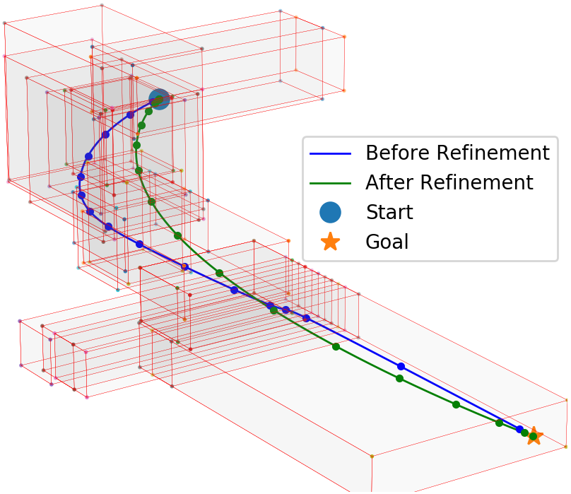 “The basic idea is that you can separately optimize the shape of the path and the speed along it, but since how fast you can fly depends on the shape of the path, these two components are intimately coupled,” Hauser said. “Our novel formulation treats this as a bilevel optimization problem, in which the speed optimization is nested inside the shape optimization as an inner subproblem. We derived a technique for efficiently determining gradients of the optimum of the inner problem so that an optimizer for the outer problem can proceed efficiently.