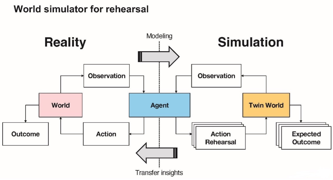 He said the “twin worlds” will act like the real world, providing realistic observations. “The agent can then use these realistic observations to take multiple different actions and then return it to the twin world, and then the twin world can generate multiple expected outcomes. Then, we can decide which outcome we want. And then we can transfer this insight to help the agent make the right decision in the real world.”